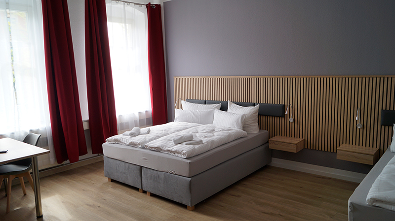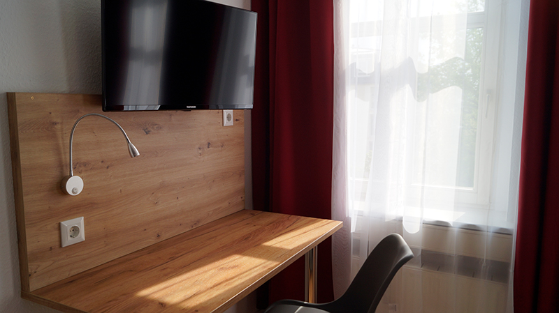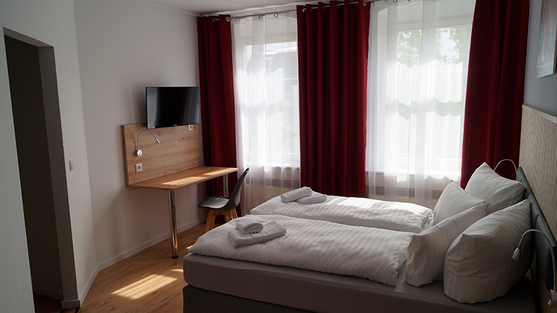 Das Zweibett-Zimmer ist durchdacht gestaltet und bietet eine geräumige, wohnliche Atmosphäre. Es verfügt über einen LED-Fernseher, Schreibtisch, Doppel-Bett, einer Dusche und einen Haartrockner. Diese Zimmer bieten einen komfortablen und angenehmen Aufenthalt.